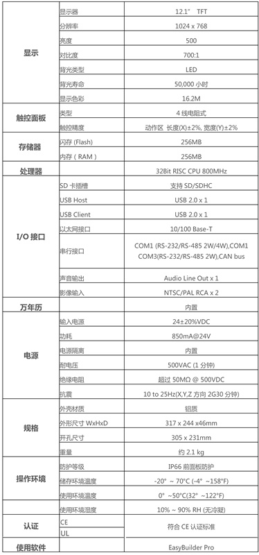 產(chǎn)品特點 Installation 鋁合金外殼搭配全新色彩與時尚設計 Video Input Ports 支持 NTSC 及 PAL 格式 12.1" 1024x768 TFT 工業(yè)級 LCD 無風扇冷卻系統(tǒng) 內(nèi)置 256MB 儲存內(nèi)存及萬年歷 NEMA4/IP66 面板防護等級 陶瓷封裝高壽命LED背光 SD 卡插槽支持 SD/SDHC 內(nèi)置電源隔離防護器 Com1或Com3 RS485 2W 支持 MPI 187.5K CAN bus 裝置支持 CANopen 通訊協(xié)議 Com1 / Com3 RS485 及CAN bus 隔離器內(nèi)置